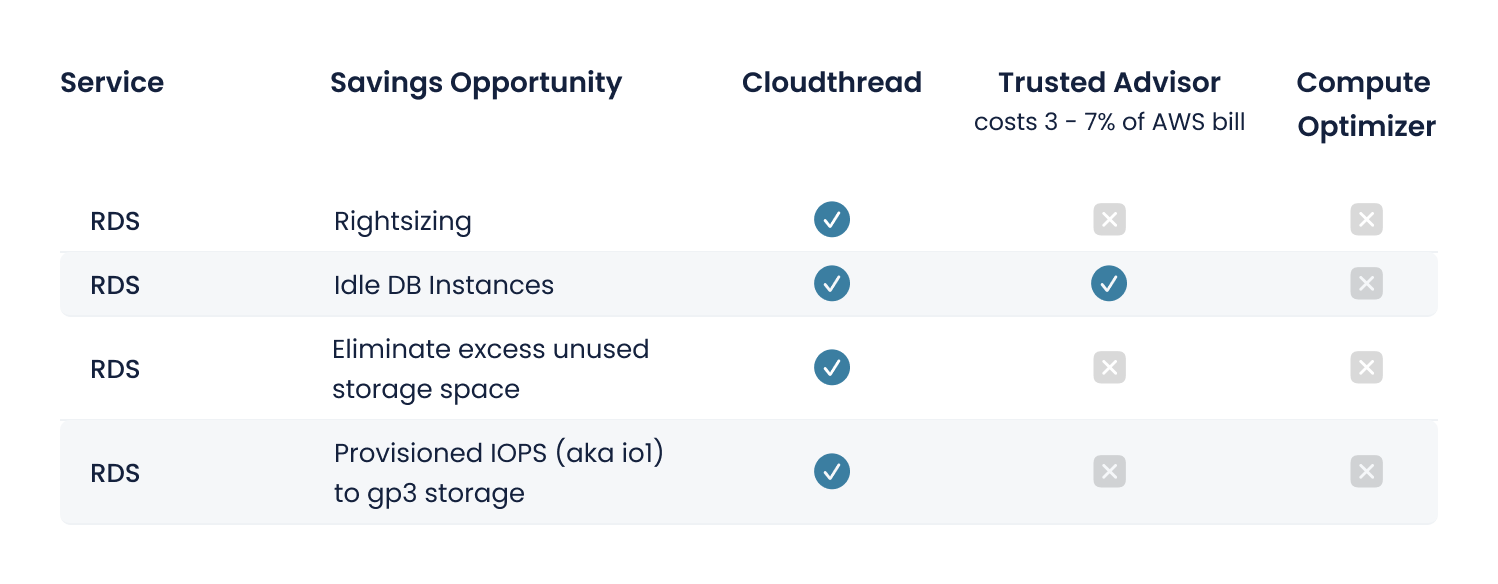 “Cloudthread uncovered tens of thousands in monthly savings that weren't visible in Trusted Advisor and Compute Optimizer. Time is my team's most valuable asset - Cloudthread's savings dashboard lets me see waste in our environment and prioritize based on cost impact and effort.”